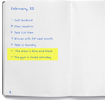 有些条目需要特别标识,比如“优先”、“重要”、“灵感”或“发现”等等,用特定的标识符号写在子弹的最前面即可。这些标识可以根据自己的习惯来设置~